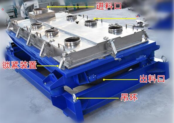(5)整個篩框有4度的傾角,使物料篩分能力更大,故產能很大