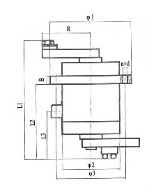型號 | L1 | L2 | B | φ1 | φ2 | φ3 | n | d | L3 | R | 功率 (kw) |