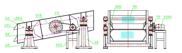 Yk型圓振篩是具有圓形軌跡的慣性振動篩,簡稱圓振篩。一般由振動器、篩體、篩網、隔振裝置、傳動裝置、底架等部分組成,篩機側板采用鋼板制作而成,側板與橫梁、激振器底座采用高強度螺栓或環槽鉚釘連接,結構合理,堅固耐用。