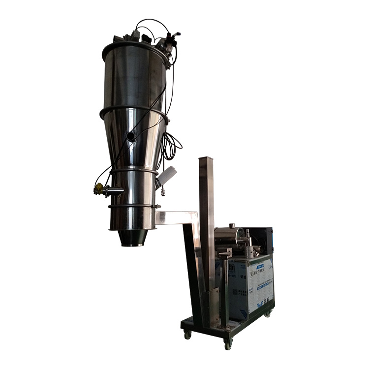 真空上料機由真空泵(無油、無水),真空料斗,過濾器(有聚酯覆膜過濾器、pe過濾器、316L不銹鋼過濾器或欽金屬過濾器多種選擇),壓縮空氣反吹裝置,氣動放料門裝置,料位自動控制裝置,不銹鋼吸料咀,輸送軟管等組成,整套系統(tǒng)設(shè)計合理,制造精美。