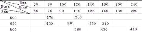 ⑴、輸送帶波紋擋邊膠帶由三部分組成:用普通輸送帶作為基帶,在帶的兩側增加波形擋邊; 橫隔板橫裝在兩波形擋邊之間。橫隔板主要有T、C、TC三種布置形式,其間距根據輸送量、輸送傾角及物料塊度等要求確定。輸送帶的主要結構及規格見圖二與表2。